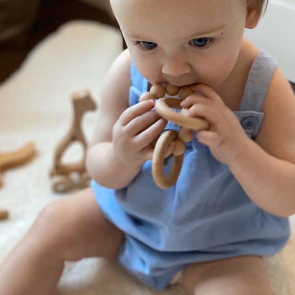 - Modell: Stellar Natural Wood Teething Toy – Speckled Pink